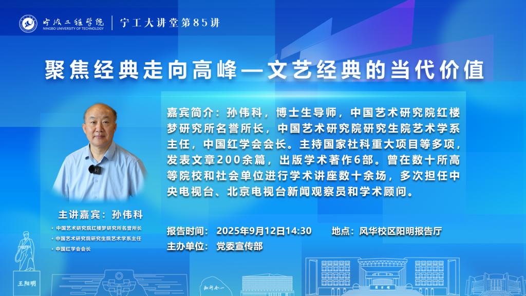 宁工大讲堂第85讲:聚焦经典走向高峰——文艺经典的当代价值