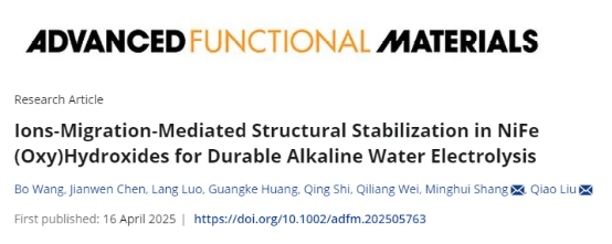 近日,团队在《Advanced Functional Materials》发表了题为“Ions-Migration-Mediated Structural Stabilization in NiFe (Oxy)Hydroxides for Durable Alkaline Water Electrolysis”的研究论文。论文DOI:https://doi.org/10.1002/adfm.202505763。